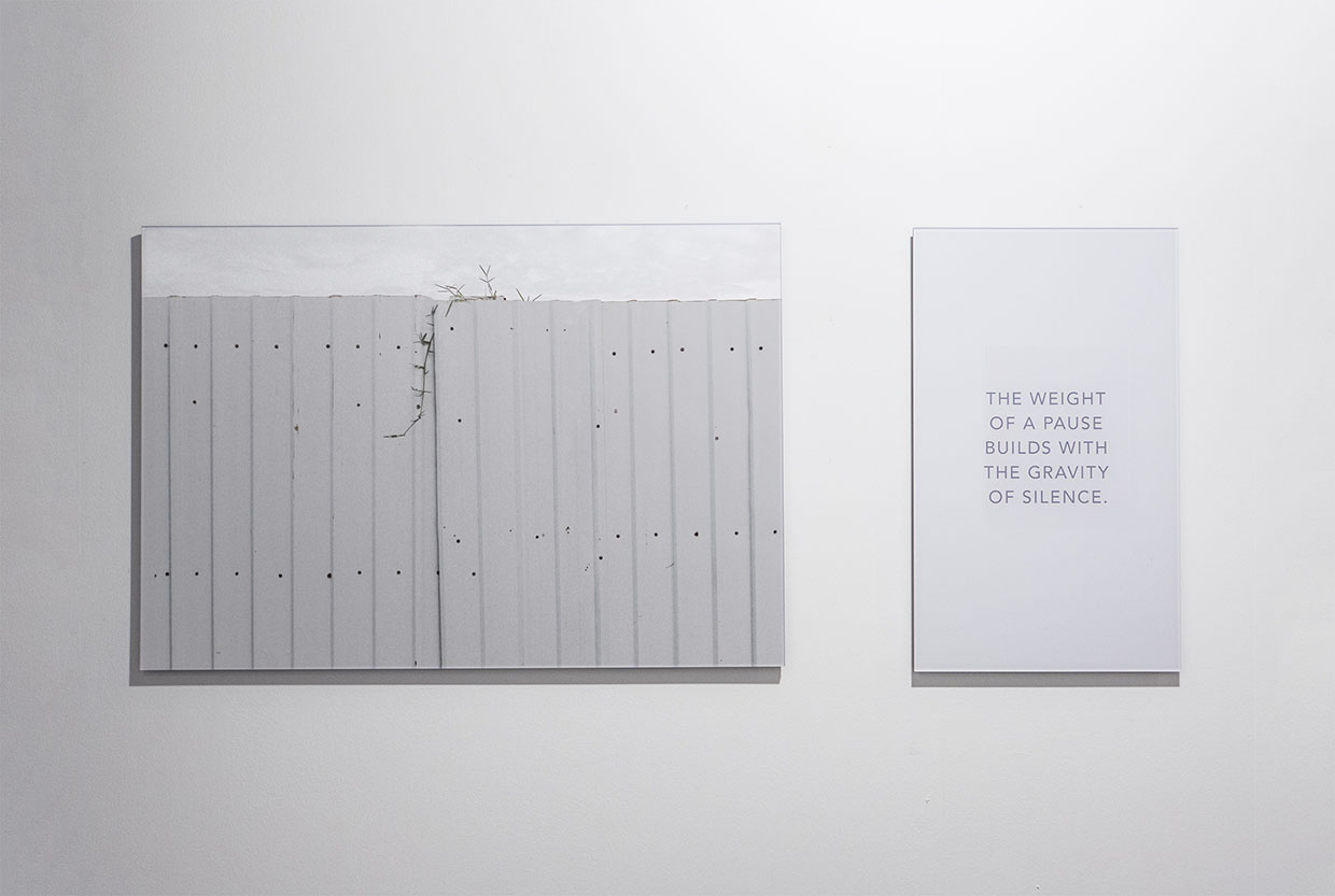 This work examines the notion of a pause – its nature, purpose and effect. Here, text and image relay a sense of rest as well as anticipation; a moment between ‘nothing is happening’ and ‘anything can’.